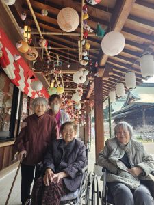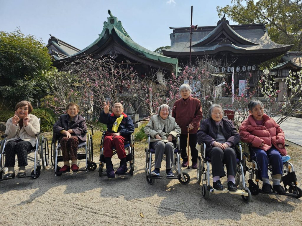 グランヴィラ大平デイサービスセンターです🎶 投稿日時:2025年4月4日 先日、直方市の多賀神社の桃祭りへ行きました🚐 手水舎には色とりどりの花や猫ちゃんたちが飾られていました🐾 境内にもたくさんのお雛様やさげもんがあり、春の雰囲気がいっぱいでした🎵 多賀神社でこんなに素敵なお雛様が見られる事を知り、これからの定番になりそうです‼