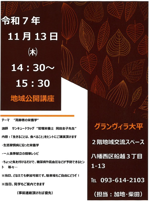 さて、地域の多くの皆様と”食欲の秋”を健康的に過ごしたく、栄養の専門の先生を招いての公開講座を行います。