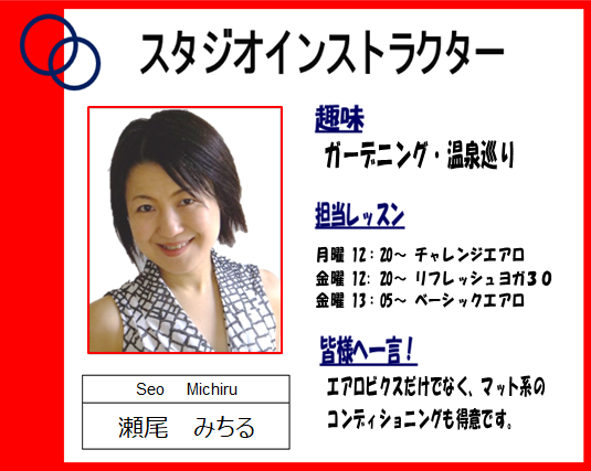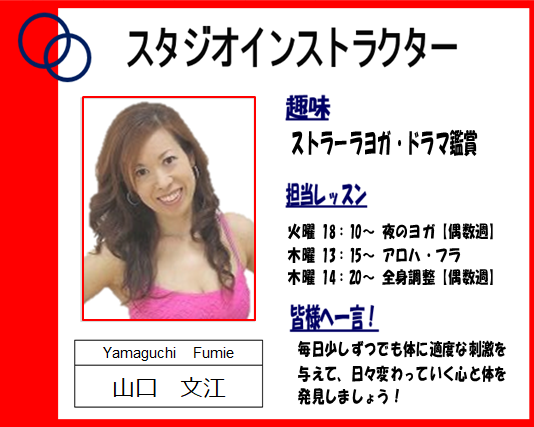 スタッフ、スタジオインストラクターをご紹介いたします。