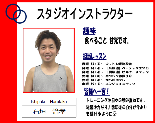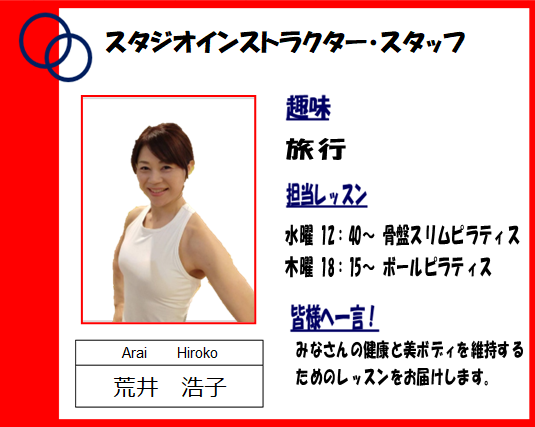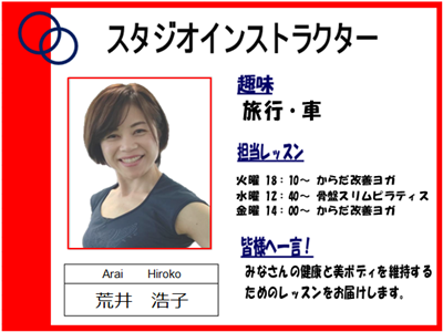 スタッフ、スタジオインストラクターをご紹介いたします。