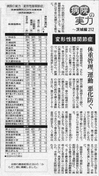 2025年7月27日(日)発行の読売新聞に「病院の実力~関節リウマチ」に当院の2024年治療実績が掲載されました。